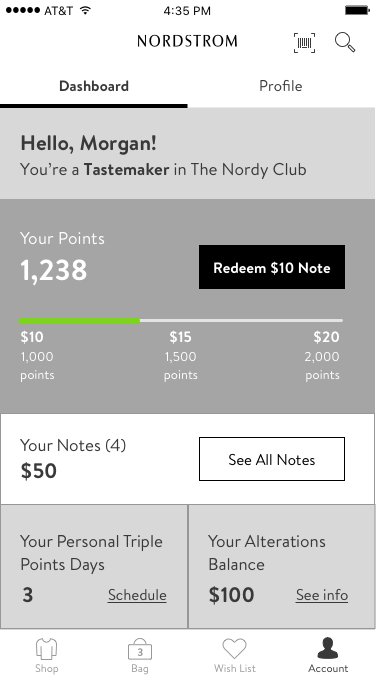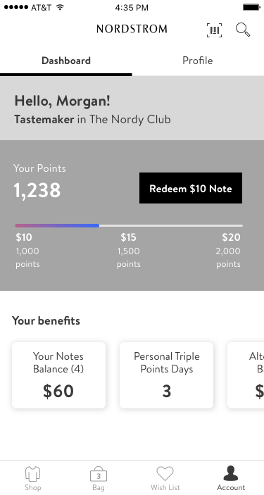 The prior Loyalty experience had a number of areas of opportunity for improvement that had existed for a long time. The Loyalty program was initially created to reward Nordstrom’s long-term and loyal customers, while enticing a new demographic of younger customers to shop.